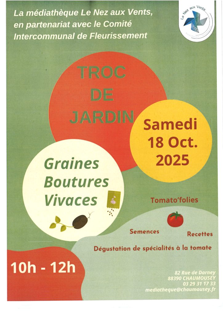 Troc de Jardin – Samedi 18 Octobre – Médiathèque Chaumousey